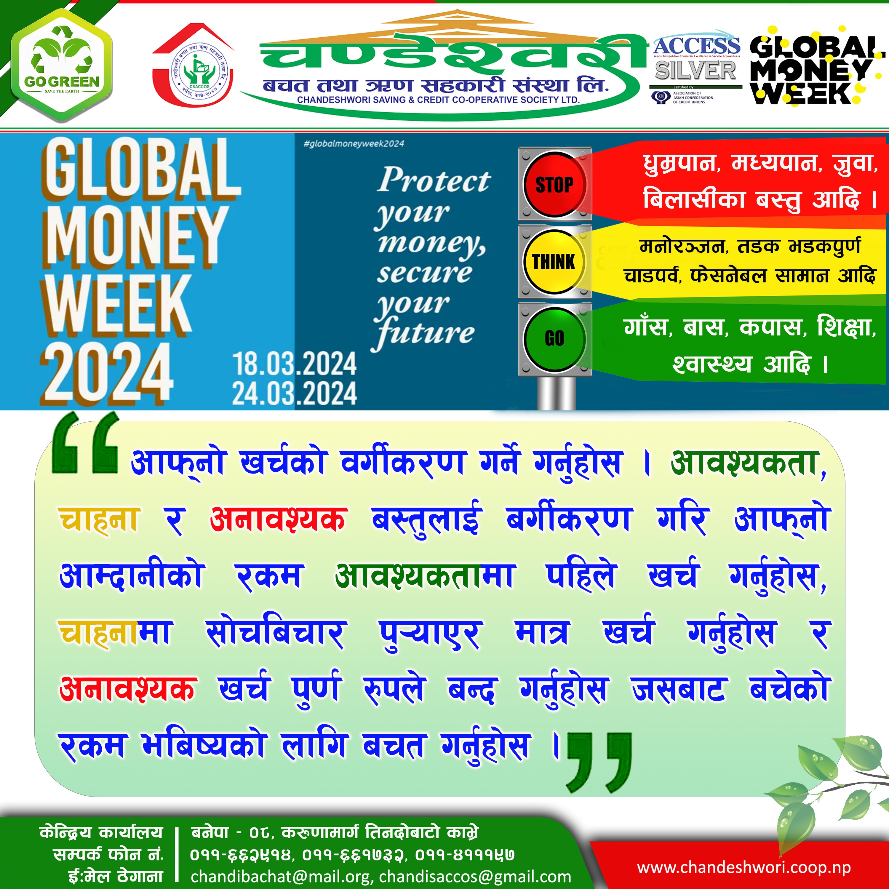 मिति ः २०८१÷०१÷१० गते सोमबार यस चण्डेश्वरी बचत तथा ऋण सहकारी संस्था लि.को नाला सेवा केन्द्रको बार्षिक कार्य योजना अन्र्तगत नाला सेवा केन्द्र उप–समितको आयोजनामा बनेपा वडा नं. ४, स्थीत नाला सेवा केन्द्र कार्यालयमा यस संस्थाका उपाध्यक्ष श्री रमेश काजी श्रेष्ठको अध्यक्ष्यतामा बित्तिय साक्षारता तालिम तथा सदस्य विस्तारित मञ्च कार्यक्रम...