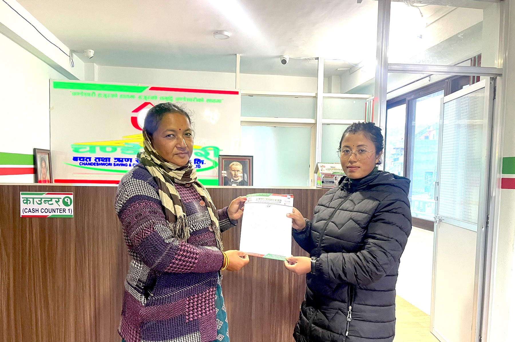 यस चण्डेश्वरी बचत तथा ऋण सहकारी संस्था लि। को योगदानमा आधारित सदस्य सुरक्षा योजना अन्र्तगत मिति २०८० पौष १९ गते बिहिबार राहत रकम वितरण गरिएको छ । यस संंस्थाका राहत योजनामा सहभागी सदस्यहरुमध्य बनेपा ९, निवासी अंन्जना कुईकेल सदस्यता नं। ००१००८८३३ को प्रशुती पौष्टिक आहार राहात बापत रु १,५००।– राहत...