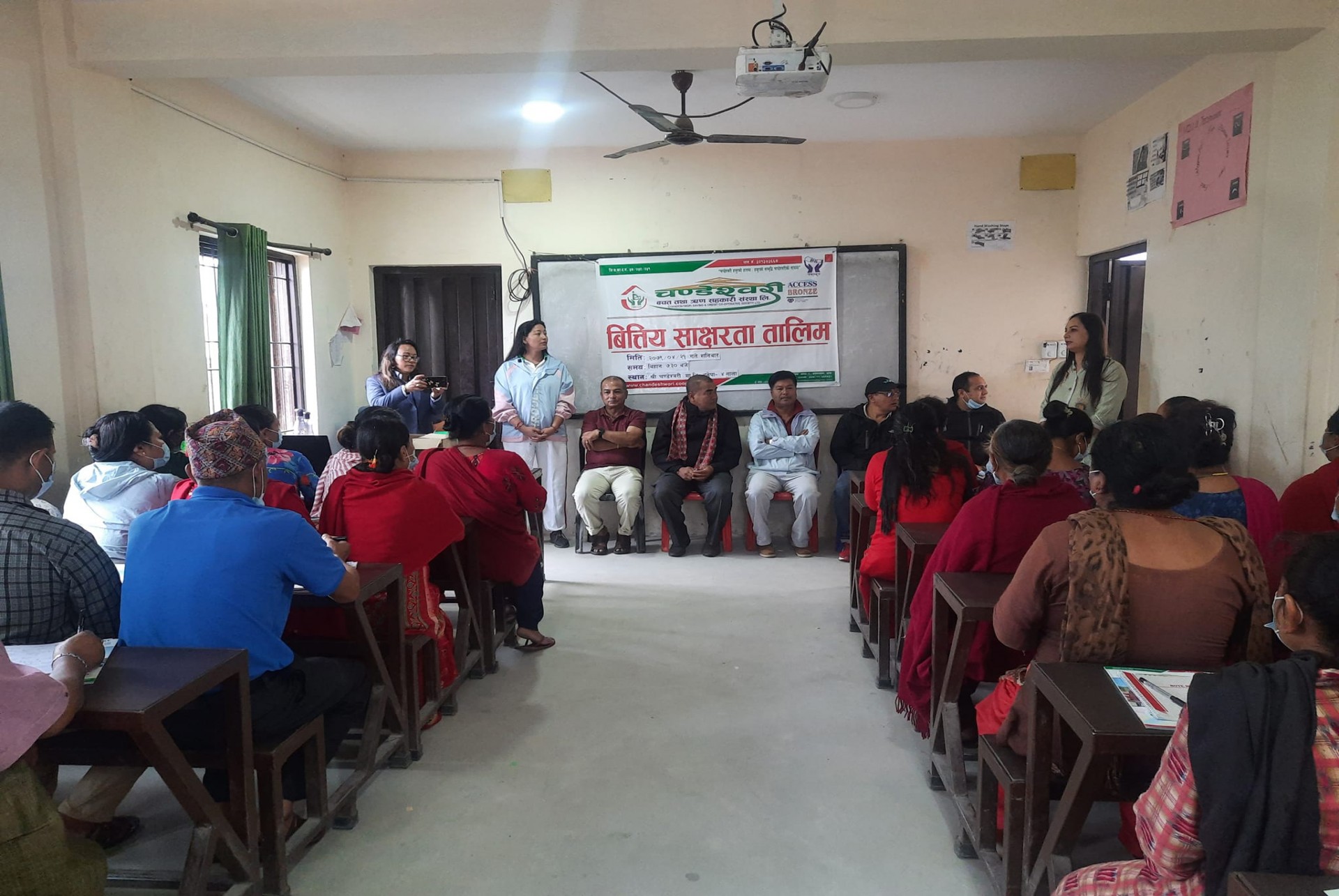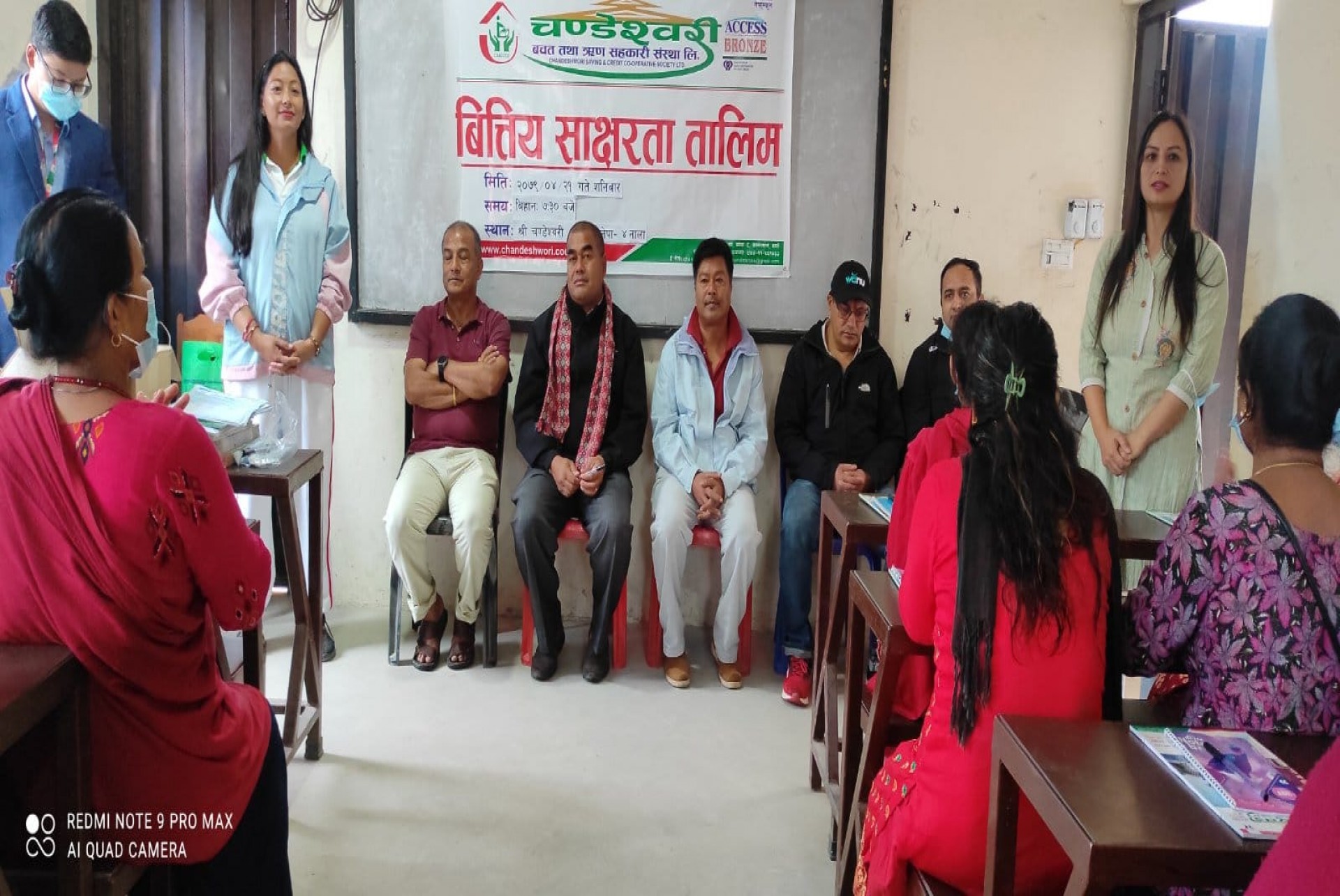 Shree Chandeshwori School, Banepa–04, Nalaयस चन्देश्वोरी साकोस का सेयर सदस्य हरु लाइ बित्तिय शिक्षा मार्फत आर्थिक रुपमा शसक्त बनाउने उदेश्य का साथ श्री चन्देश्वोरी मा.बि. बनेपा ४ नाला मा बनेपा नगरपालिका वडा न. ४ का वडा अध्यक्ष आदरणीय श्री श्याम सुन्दर श्रेष्ठ ज्यु को प्रमुख आतिथ्यता मा उच्च जनसहभागिता का साथ बित्तिय साक्षारता तालिम सम्पन्न गरिएको छ ।