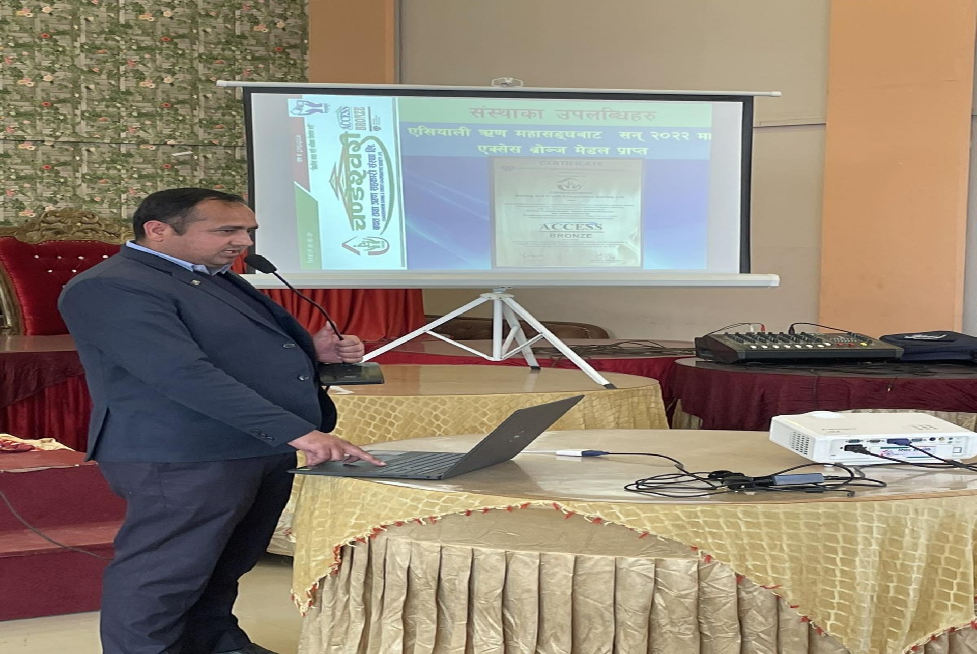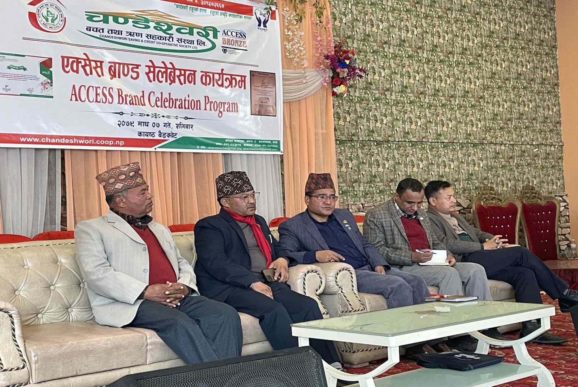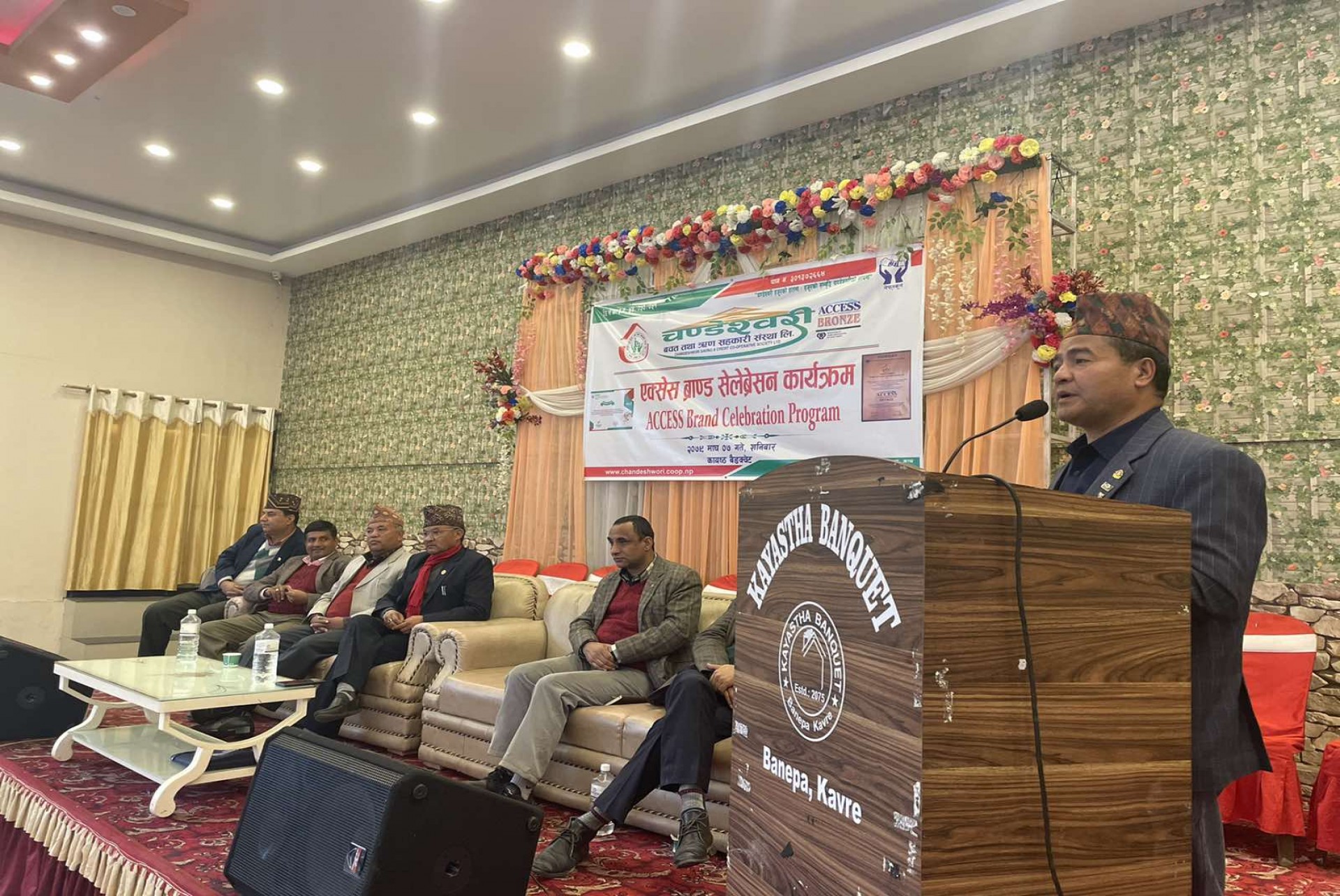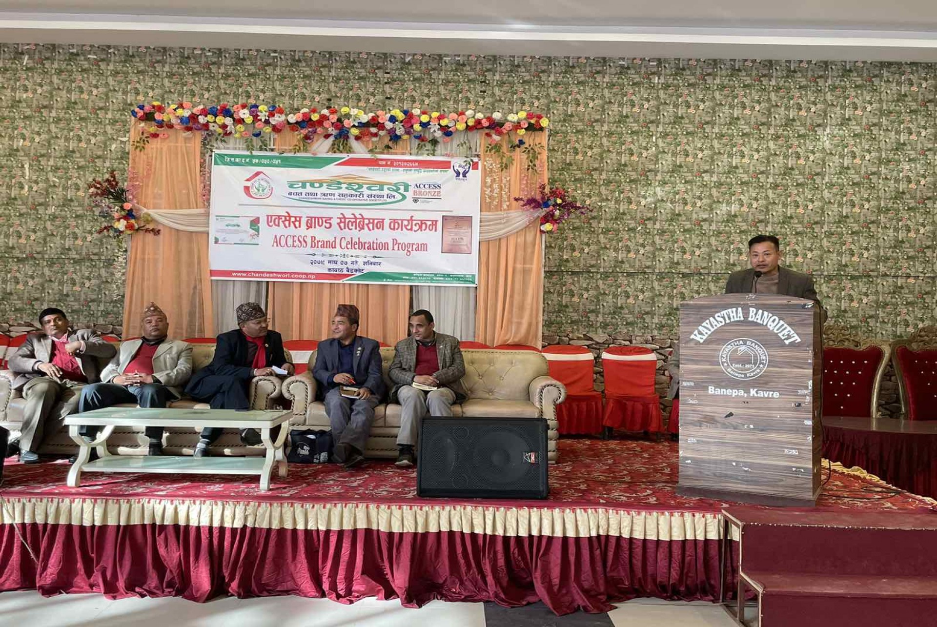 बनेपा वडा नं. ०५ कायष्ठ बैङक्वैटयस चन्देश्वरि बचत तथा ऋण सहकारी सस्था लि बनेपा को एक्सेस ब्रान्ड सेलिब्रेसन कार्यक्रम हिजो मिति २०७९ माघ ७ गते सनिवार छोटो औपचारिक कार्यक्रम मार्फत सम्पन्न भएको छ । कार्यक्रम को अध्यक्षता सस्था का अध्यक्ष श्री नवीन भक्त बादे श्रेष्ठ ले गर्नुभएको थियो भने बनेपा नगरपालिका को प्रमुख श्री शान्ती रत्न शाक्य ज्यु को प्रमुख आतिथ्यता मा सो कार्यक्रम सम्पन्न भएको थियो । कार्यक्रममा विभिन्न बिशिस्ट ब्यक्तित्व ज्यु हरु को उपस्थिति रहेको थियो । सस्था का प्रमुख कार्यकारी आधिकृत श्री झलेन्द्र दाहाल ले सस्था को परिचय, बित्तिय स्थिति तथा हाल को गतिविधि हरु बारे प्रस्तुति दिनु भएको थियो । कार्यक्रम को सहजिकरन सस्था का सचिब श्री बुधरत्न मानन्धर ले गर्नु भएको थियो । सो कार्यक्रम का केही झलक हरु :-