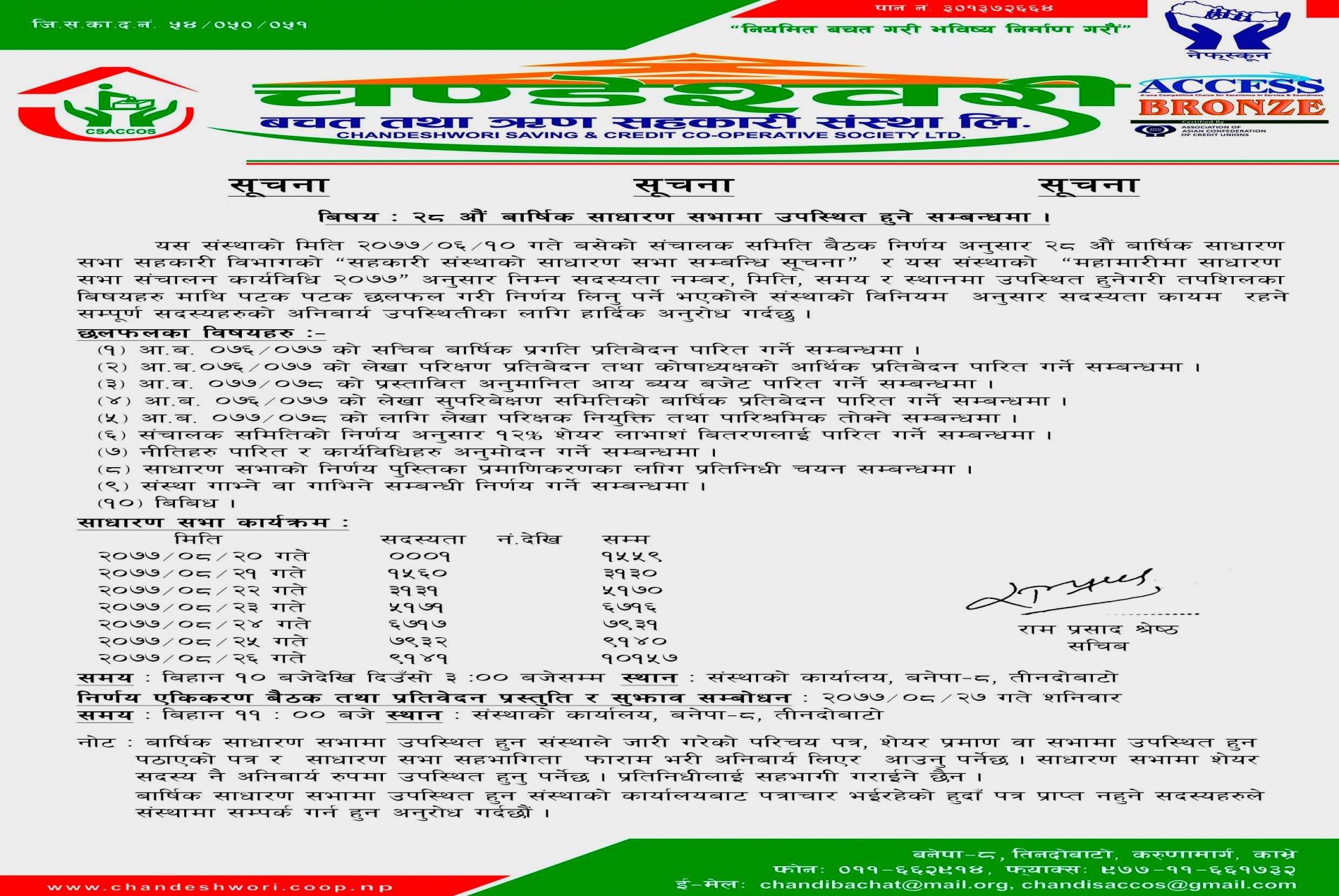 २८ औं वार्षिक साधारण सभासम्बन्धी सूचना