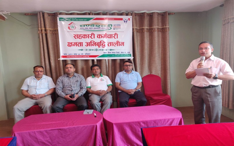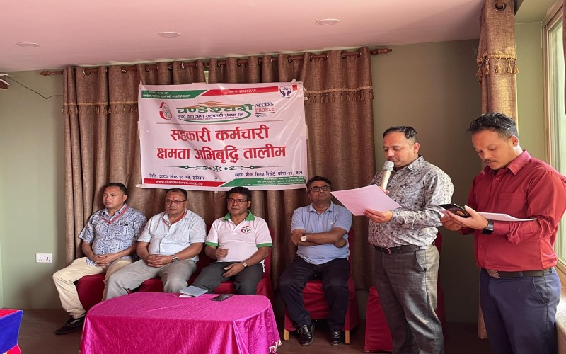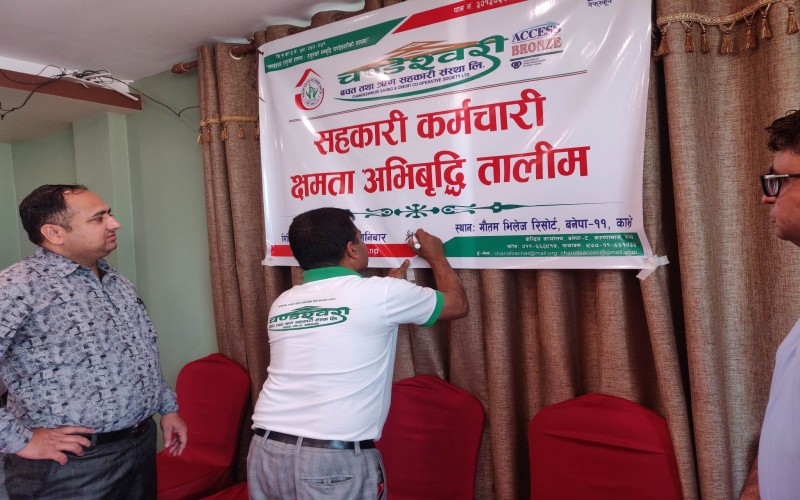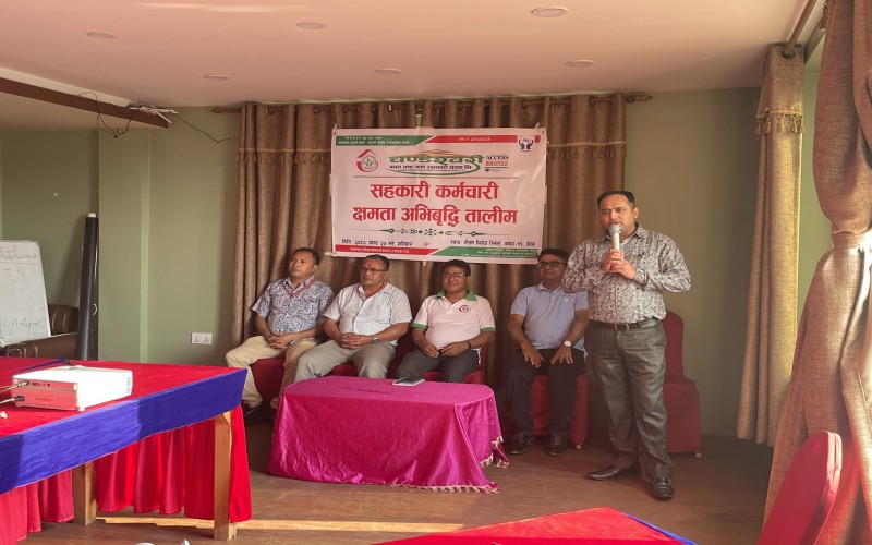 मिति ः २०८० जेष्ठ २७ गते शनिबार यस संस्थाका कर्मचारीहरुको क्षमता अभिबृद्धि गर्ने उद्धेश्यका साथ शिक्षा तथा समाज कल्याण उप समिति को संयोजकत्वमा एक दिने सहकारी कर्मचारी क्षमता अभिबृद्धि तालिम सम्पन्न भएको छ । संस्थाका अध्यक्ष श्री नबिन भक्त बादे ज्युको अध्यक्षतामा सम्पन्न सो कार्यक्रमा संस्थाका सम्पुर्ण कर्मचारीहरुको सहभागिता रहेको थियो भने संस्थाका सचिब श्री बुद्धरत्न मानन्धरज्यु, शिक्षा तथा समाज कल्याण उप समिति संयोजक श्री पुर्ण पोटे ज्यु, संचालक समिति सदस्य श्री सुरेन्द्र प्रजापती ज्युको उपस्थीती रहेको थियो । बर्तमान समयमा सहकारी कर्मचारीको भुमिकाको बिषयमा प्रस्तुत तालिमको सहजिकरण राष्ट्रिय सहकारी बैङ्कका तालिम बिभागका अधिकृत श्री बल्लभ तिमल्सीना ज्युले गर्नुभएको थियो ।
