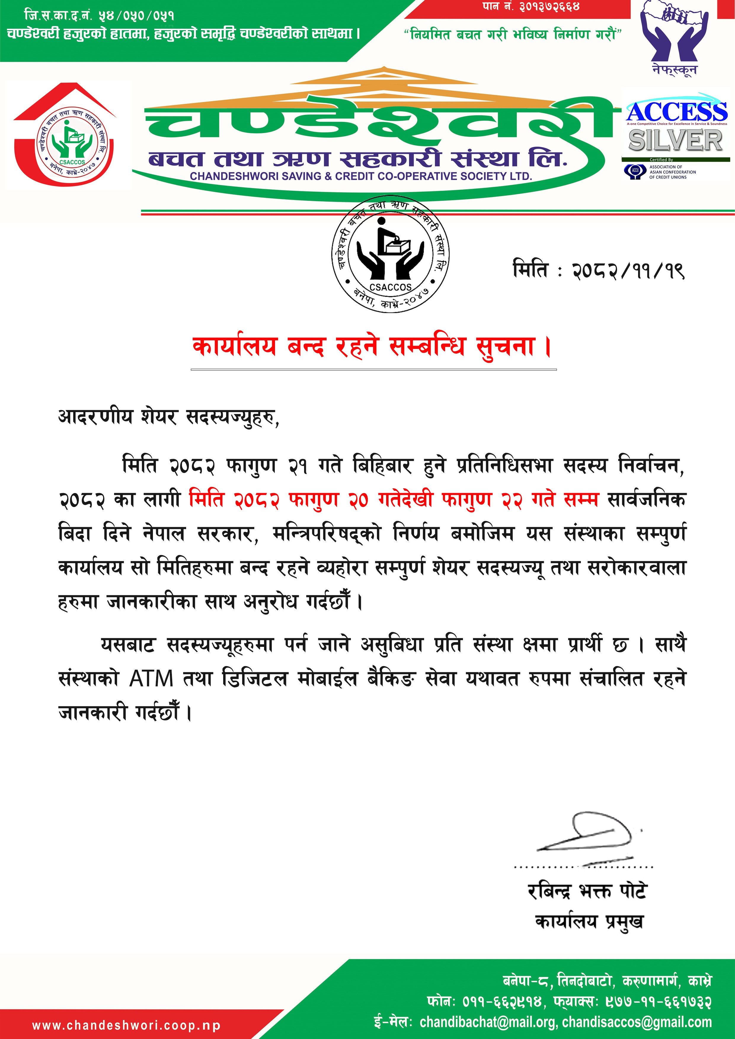 Notice of Senior Member Hororing Program