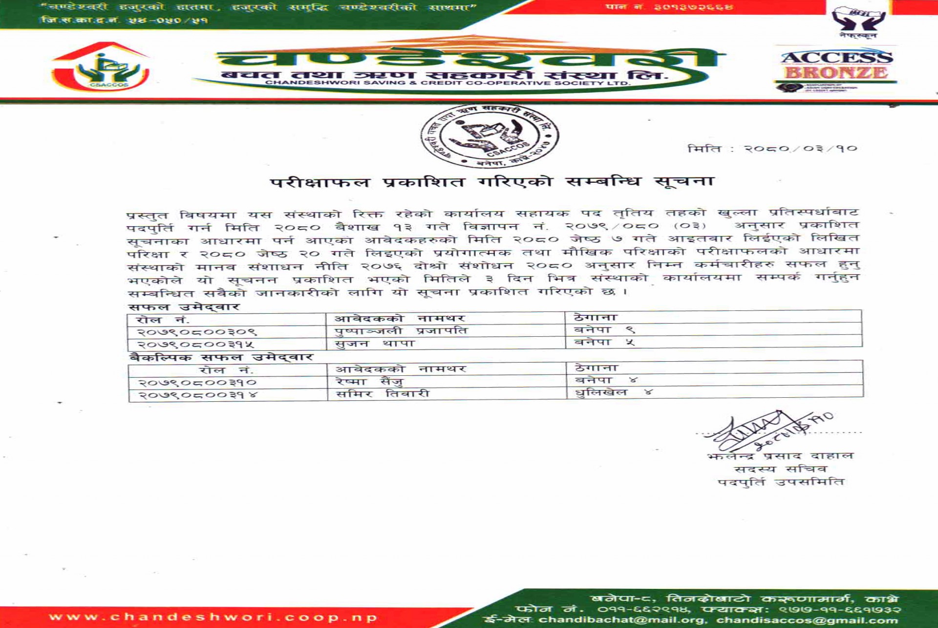 नतिजा प्रकाशित गरिएको सम्बन्धमा